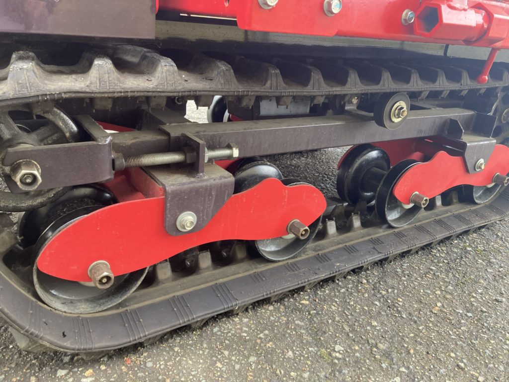 こちらの運搬車の一番の特徴であります、新開発のウイング転輪機構「天城越え」を採用、さらに前ミッションにする事により、前後のバランスが良く(ミッションが前、エンジンが後ろ)、空荷での斜面走行や段差乗り越えも安全走行。